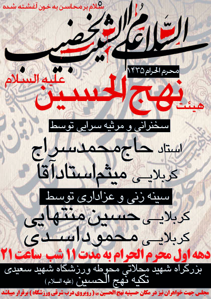 برنامه هیئت نهج الحسین (ع) در دهه اول محرم الحرام 1435